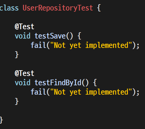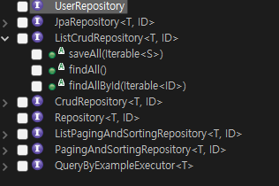 TestCase를 생성하면 Repository에서 상속한 인터페이스와 그 상위 인터페이스들의 메소드들을 테스트 할 수 있다.