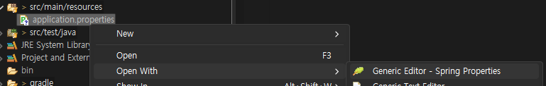 Generic Editor로 열면 content assist 사용가능