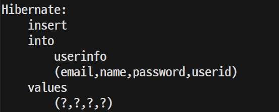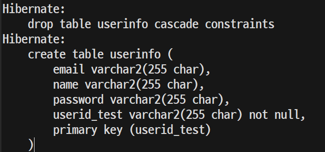 이렇게 설정하고 실행시키면 userinfo 테이블이 생성된다.