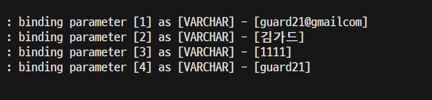 쿼리에 binding 하는 파라메터를 보여줌