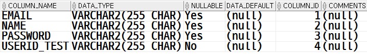 userid 로 컬럼명이 설정된다.