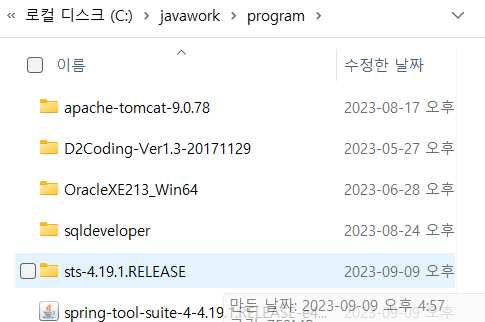다운로드 받은 jar파일을 STS를 설치할 위치로 이동시키고 압출을 풀어주면 된다.