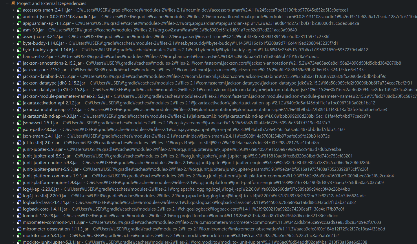Project and External Dependencies 와 build.gradle에서 확인할 수 있다.