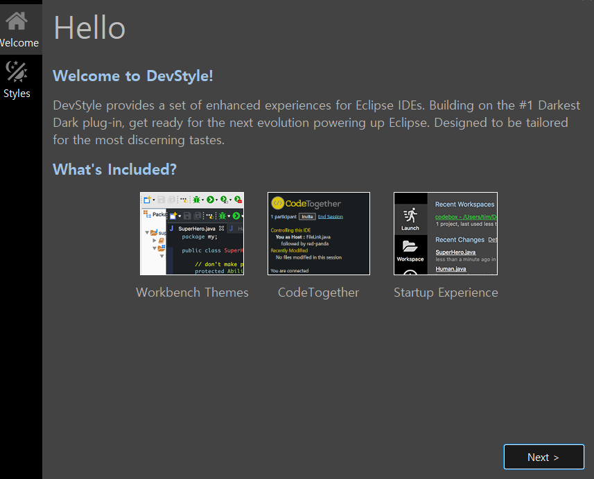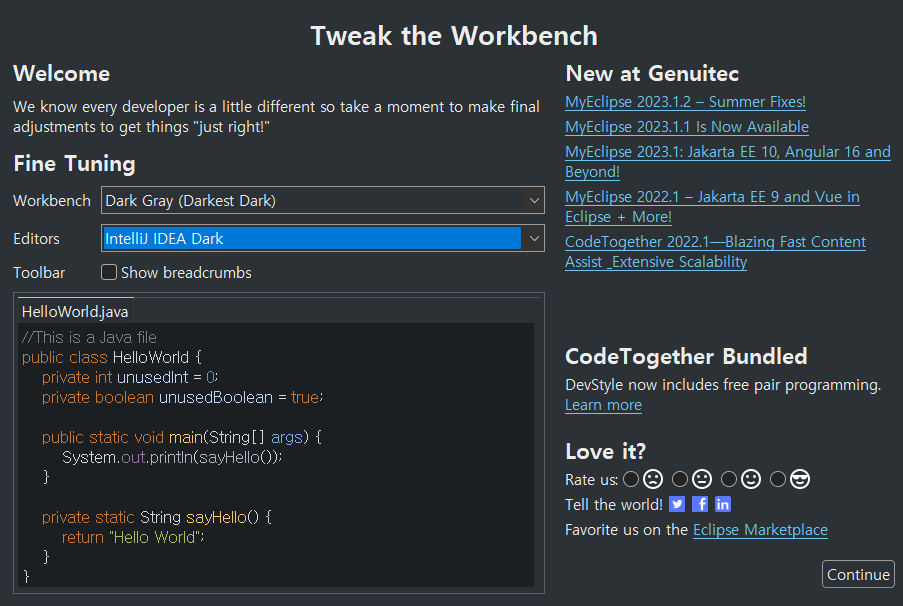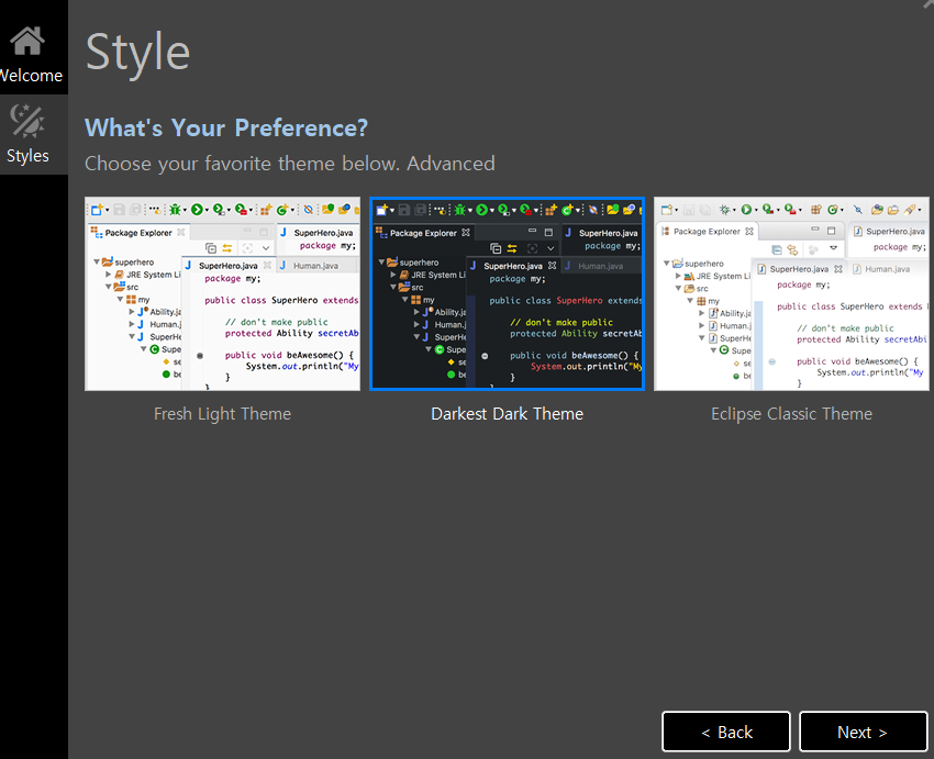 재실행하고 나면 에디터 테마 선택하는 창이 나온다.