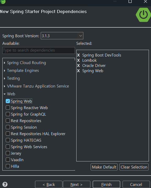 스프링 부트 버전 및 의존성 라이브러리들 설정 - Finish