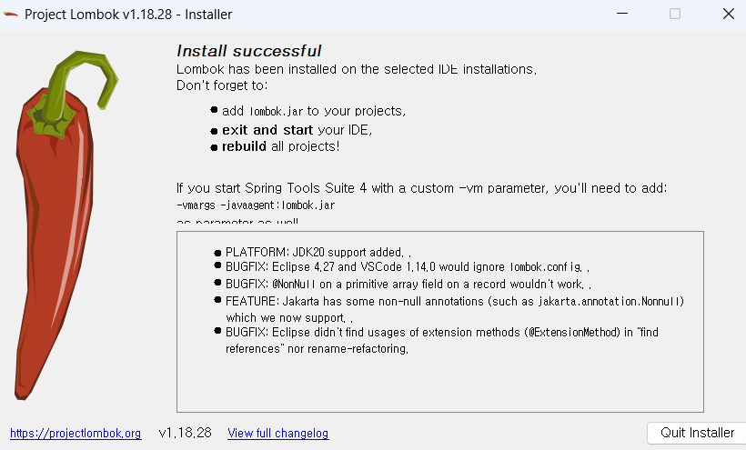 sts-4.19.1.RELEASE (STS프로그램 설치된 디렉토리)에 lombok.jar 파일 이동