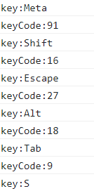 console.log("keyCode:"+e.keyCode);//ASCIIcode