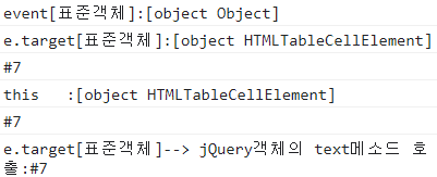 console.log("e.target[표준객체]--> jQuery객체의 text메소드 호출:"+$(e.target).text());