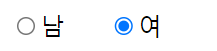 <!-- 배타적 단일 선택 입력 요소 (radio button) -->