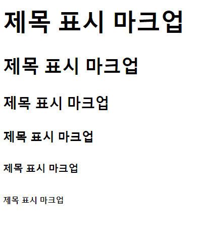 제목 마크업, h1이 가장 크다. h6이 가장 작고 그 이상 존재하지 않는다.