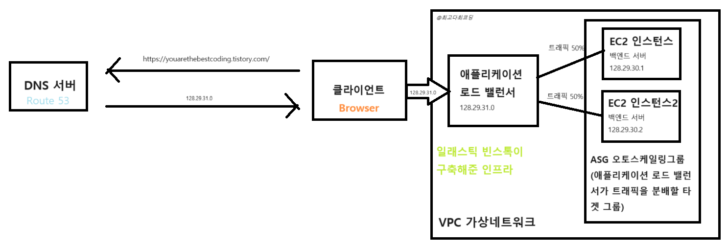 트레픽을 적절히 분배해준다. EC2 인스턴스들이 공유하는 가상의 IP를 만들어 Route 53에 등록하고