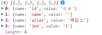 serializeArray() 함수 =>json 배열 형태로 data 생성