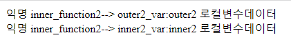 //outer_function2() 실행이 끝나고 inner_function2를 반환받아서 실행하면 outer_function2의 변수와 inner_function2의 변수를 모두 사용할 수 있다.