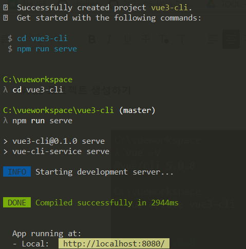 프로젝트 디렉터리의 터미널에서 명령어를 실행한다.