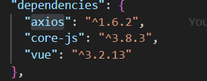 정상적으로 다운로드되면 package.json의 dependencies에 axios가 추가된다.