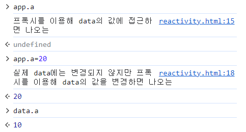 Proxy는 data를 mocking할 뿐, 실제 data에 접근하는 것이 아니기 때문에 실제 data의 값은 변함 없다.